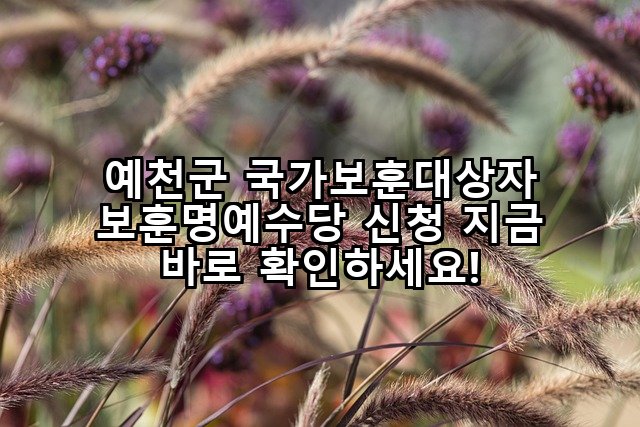 자랑스러운 대한민국의 오늘을 있게 한 분들, 바로 국가를 위해 헌신하신 국가보훈대상자와 그 유가족분들입니다. 그분들의 희생과 헌신에 대한 존경과 예우는 우리 사회가 마땅히 지켜야 할 가치이며, 이를 실천하는 것은 공동체의 중요한 책무입니다. 예천군에서는 이러한 숭고한 정신을 기리고 국가보훈대상자 및 유족의 생활 안정과 복지 향상을 위해 「국가보훈대상자 보훈명예수당」을 지원하고 있습니다. 이 수당은 단순히 금전적인 지원을 넘어, 그분들의 … 더 읽기